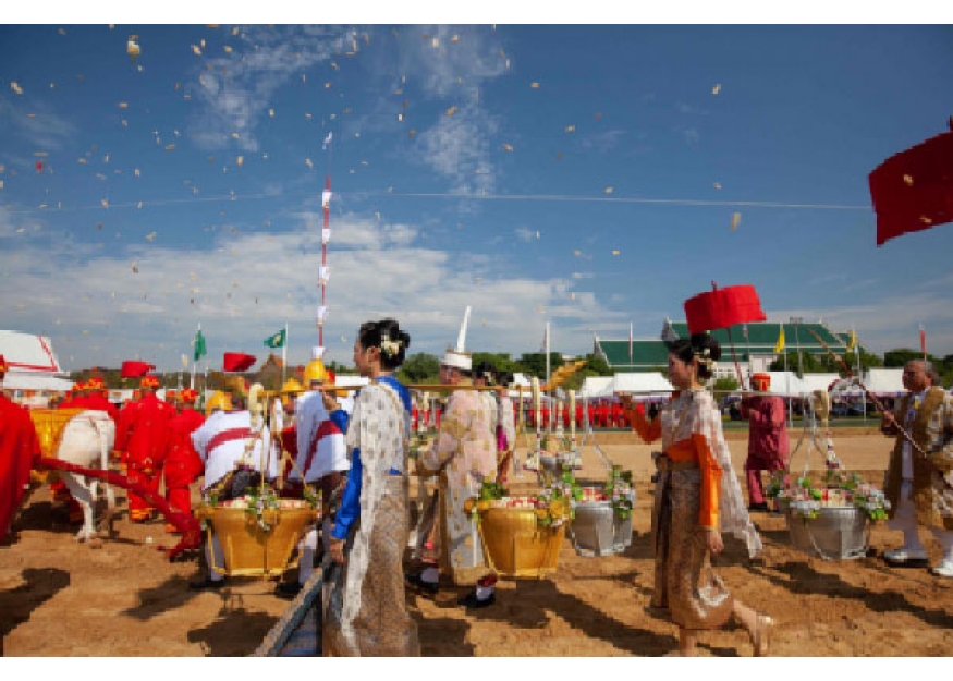 2019年春耕节活动包括两个部分,一是58日举行佛教诵经祈福仪式,二是59日在皇家田广场举行皇家祭拜、祈雨、神牛测丰、开耕播种等仪式。