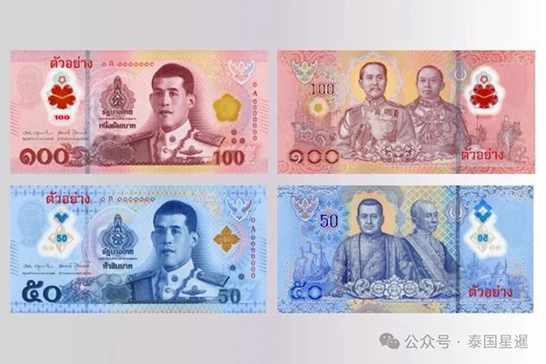 50铢与100铢聚合物钞票整体设计仍与现行纸币相似,但采用了先进技术提高防伪标准。