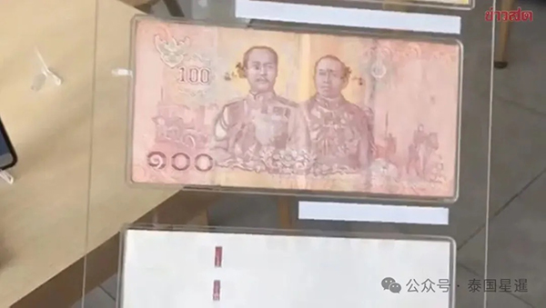 尤其是面额100泰铢的纸币——从背面看,与普通100泰铢纸币完全相同;但翻到另一面时,却发现正面完全空白,仅留有背面图案,上面印有拉玛五世与拉玛六世国王的肖像。