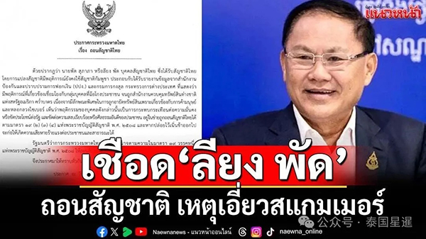 内政部长阿努廷据《国籍法》第19条第一款之规定,决定撤销李永法的泰国国籍。