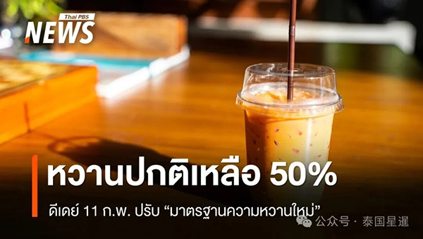 2月11日,泰国卫生部疾病控制厅与泰国9大知名饮品品牌经营者合作,包括 Café Amazon、Inthanin、All Café、Black Canyon、Punthai 和Chaodoi 等,从即日起正式采用“正常甜度=原配方甜度的50%”的新标准。