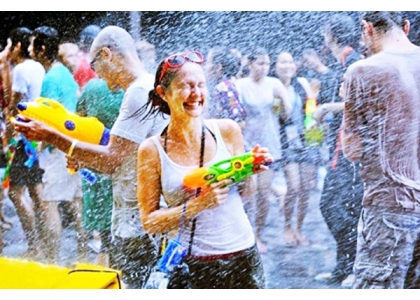 泰国中部大城府本月11日率先拉开宋干节泼水狂欢序幕,当地观光部门特别安排在大城故都世界遗产公园里,出动11头大象使用2000公升水与游客大打水仗,消暑纳凉气氛超爽。